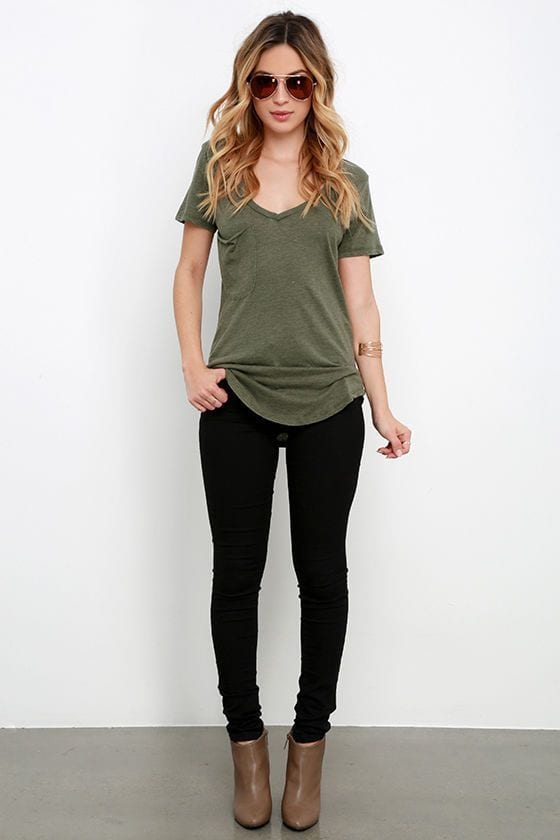 Este escote alarga el cuello y el pecho, sin importar si tienes mucho o poco. Adóptalo para lucir más estilizada en cuestión de segundos. Procura que el top sea holgado o plisado para disimular un vientre abultado y por supuesto que sea un escote que se vea elegante.