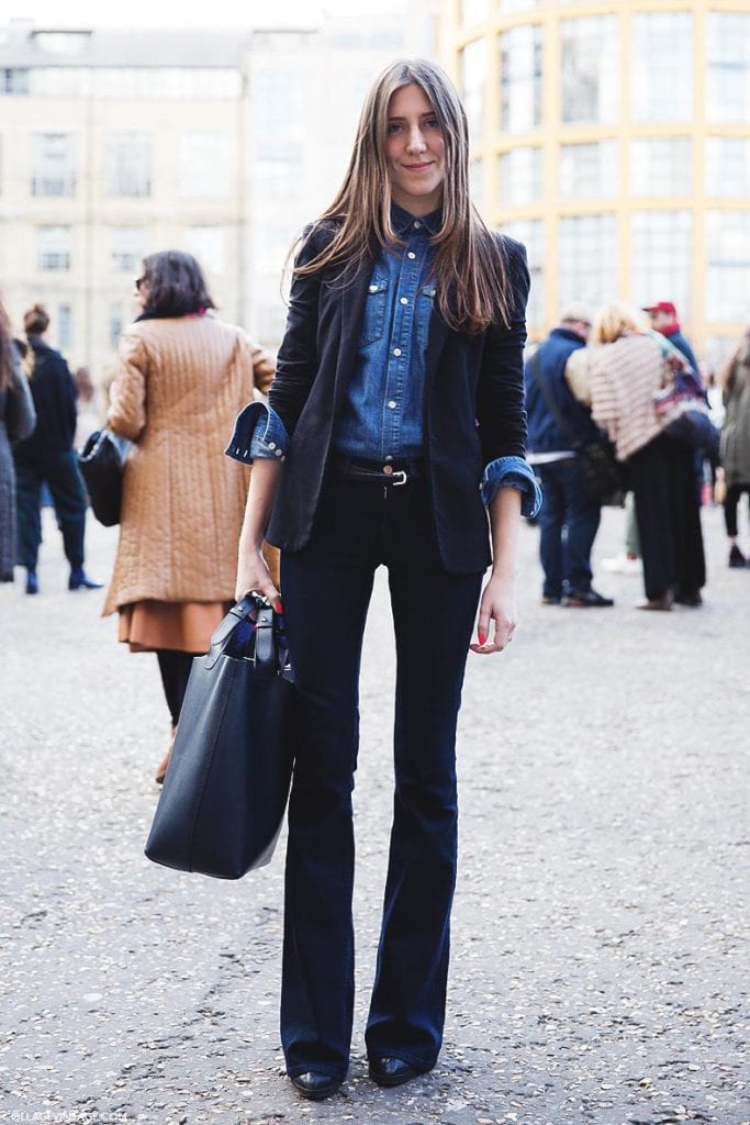 El denim universalmente favorecedor es el oscuro u oxford con un corte recto o “acampanado” en las piernas. Lleva tus jeans con camisas holgadas para verte stylish y súper delgada en segundos. Tip: Recuerda que tus jeans deben llegar a ras del suelo.