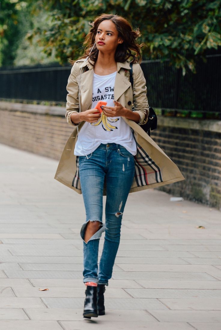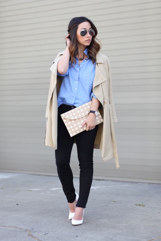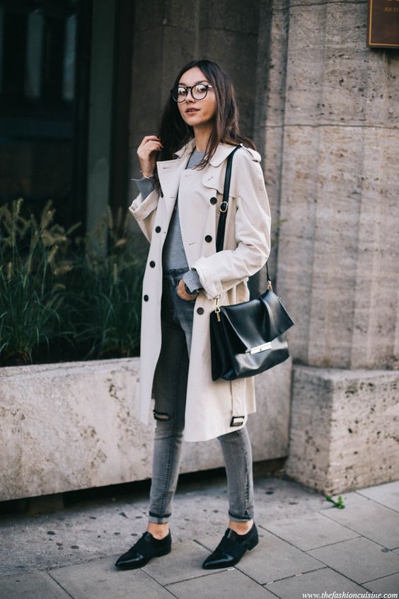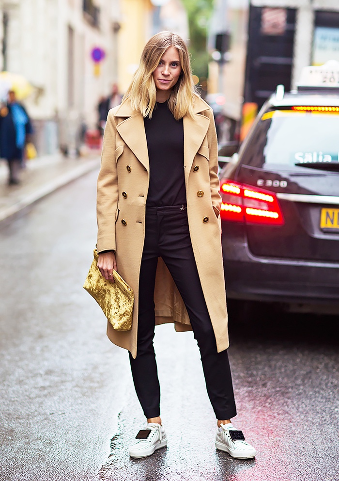 Zapatos, loafers o tacos… no hay restricciones a la hora de llevar un trench coat.