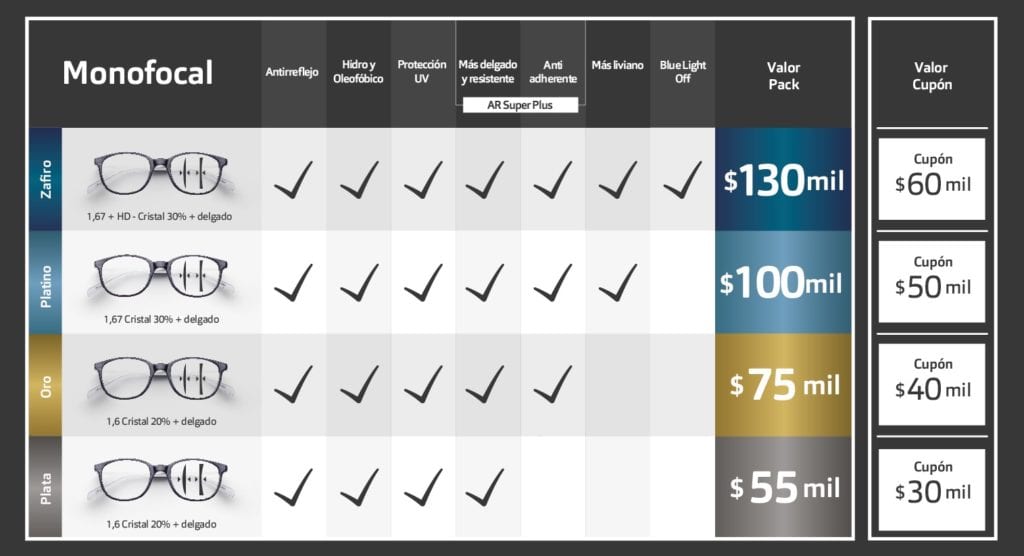 Asimismo por la compra de tus nuevos anteojos o “packs” obtienes cupones de descuento para utilizar en tu próxima compra que pueden ser anteojos de sol, audífonos o anteojos ópticos. Qué mejor?