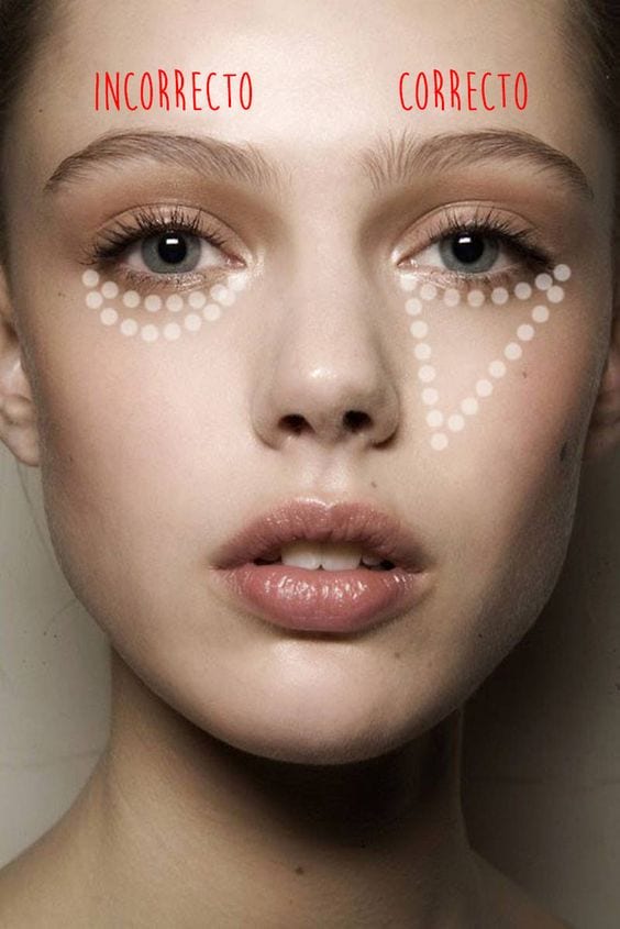 Es importante siempre hacer la forma de triángulo invertido para dar luz a toda esa zona y no sólo bajo los ojos que a veces hace más notoria la diferencia.
