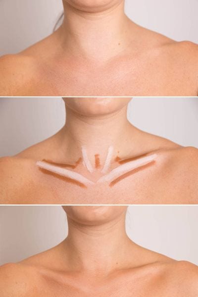 ¿Sabías que el corrector también te ayuda a aportar volumen? Si tienes ganas de experimentar con labios más gruesos, puedes aplicar un poquito de corrector al centro y difuminarlo bien para que se vean más voluminosos. ¡Ah! y también puedes marcar más las clavículas si aplicas corrector justo sobre el huesito como se ve en la foto. Mi consejo es que sea sutil, el maquillaje puede aportar a potenciar ciertas cosas, pero lo más importante es seguir viéndonos tal y como somos.