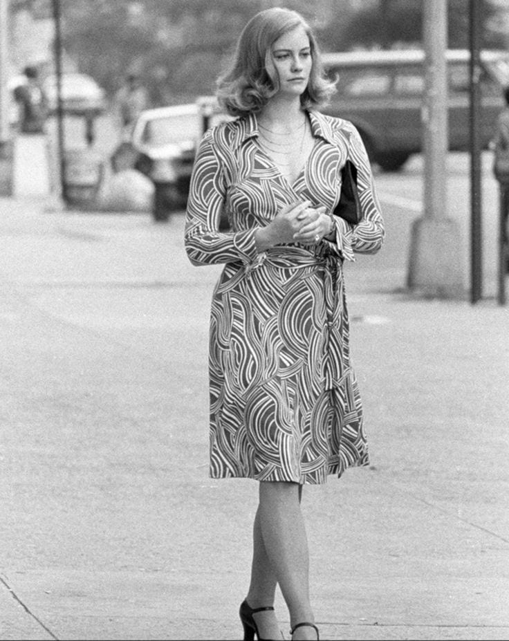 “Siéntete como mujer, usa un vestido’, dijo la diseñadora Diana Von Furstenber al lanzar el famoso modelo en 1973, que consistía en unir el top con la falda en una sola prenda. Es un vestido abierto como una bata y al enrollarlo sobre el cuerpo se amarra a la cintura, quedando un escote en V y dejando entrever un poco de pierna. En aquellos años se llegó a vender 5 millones de piezas, lo que lo transformó en un vestido icónico y eterno.