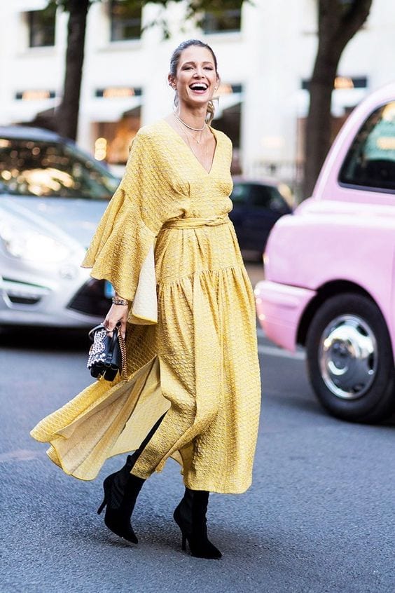 El wrap dress existe en distintas versiones; corto, hasta la rodilla y largo, puede ser con mangas, manga tres cuartos, con pabilos o incluso manga larga. Se puede acompañar de sandalias planas, balerinas (que quedan mejor cuando el vestido es corto), sandalias con taco, zapatillas blancas y con el zapato de media temporada: las sock boots –esa bota tipo calcetín que viene en versión bucanera y también hasta el tobillo-.