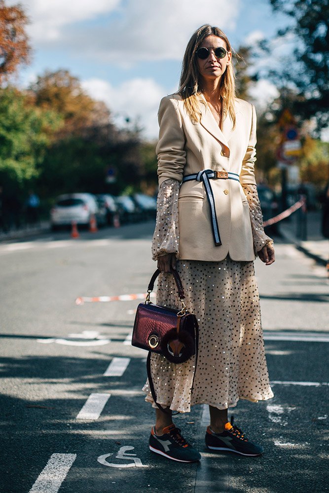 El vestido lencero (o slip dress), ligero y sensual, se contrasta a la perfección con las líneas más estructuradas del blazer. Un combo de tendencias opuestas que tiene como resultado un outfit explosivo.