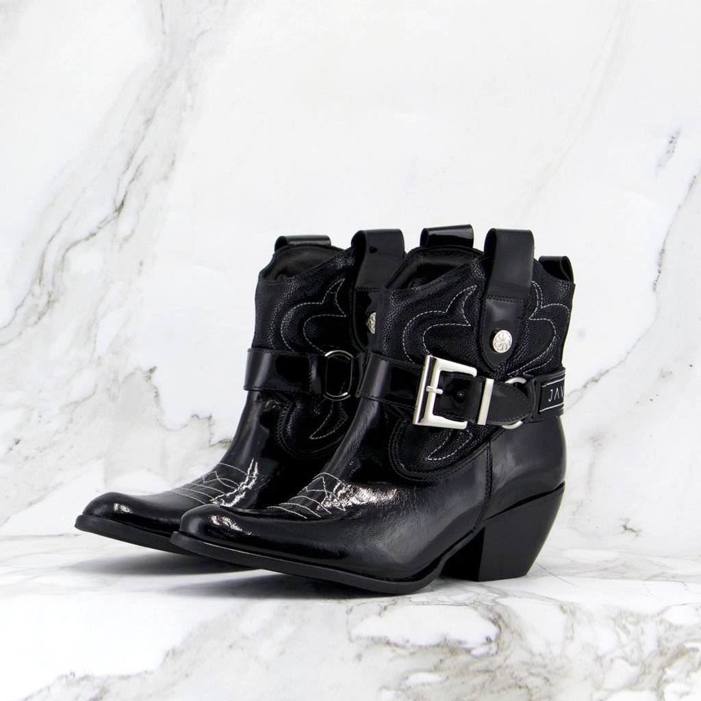 Cuando se trata de botines vaqueros en EffortlessChic ya tenemos nuestra favorita indiscutida: el modelo Pati Black de Javiera Poch. Su diseño de cuero incorpora onderos detalles como una correa en el tobillo, broches laterales y bordados en su superficie. Además su tacón de 6 cm es perfecto para acompañarte cómodamente todo el día. Descúbrelo en el Marketplace MPBLANCO haciendo clic AQUÍ.