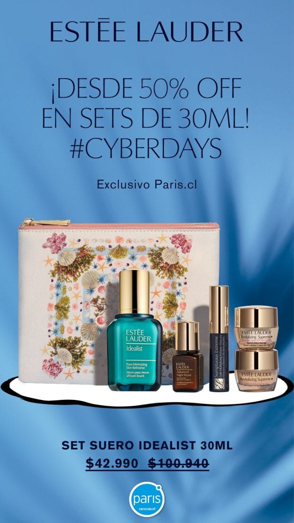 Paris también tiene increíbles ofertas en distintos sets de Estée Lauder de 30ml donde todos ellos están con un 50% de descuento y vienen además con un precioso cosmetiquero con productos de regalo!